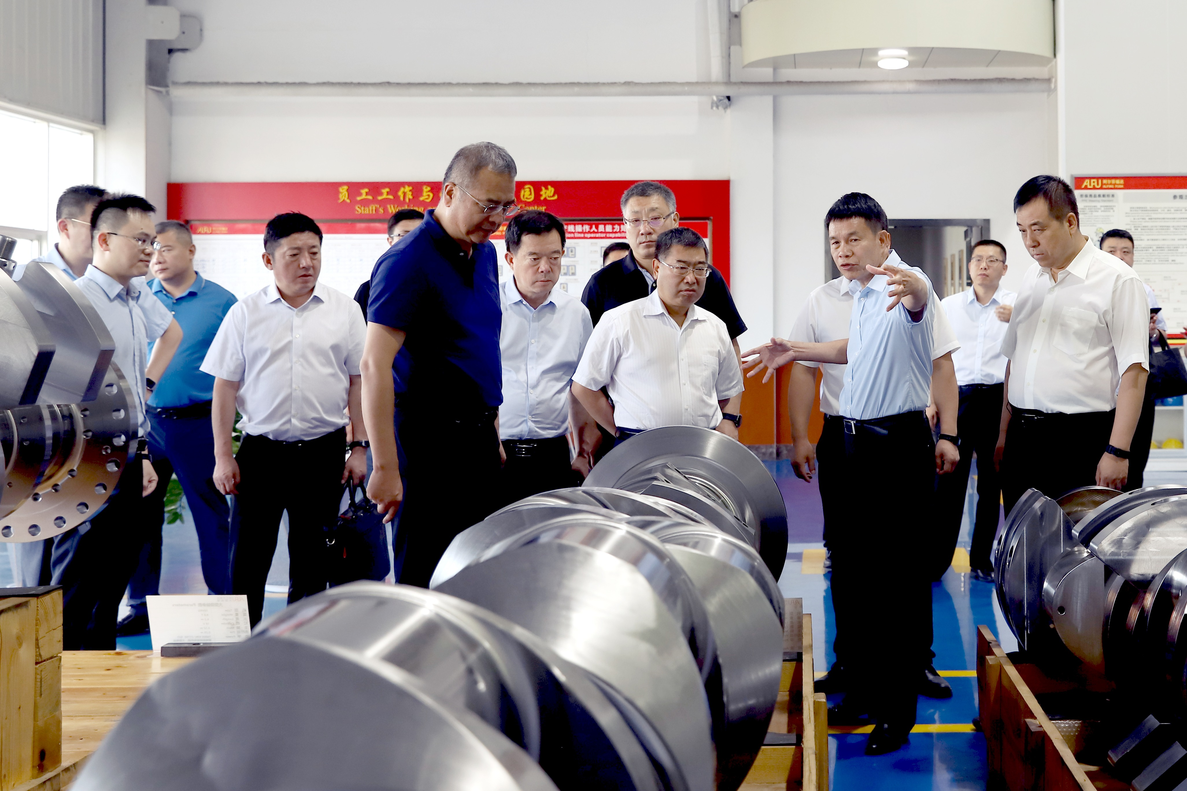 代表團(tuán)一行首先來到福達(dá)股份生產(chǎn)區(qū)域展開調(diào)研。在桂林福達(dá)阿爾芬大型曲軸有限公司生產(chǎn)線上,黎福超詳細(xì)介紹了福達(dá)股份產(chǎn)業(yè)轉(zhuǎn)型升級的新思路,桂林福達(dá)阿爾芬合資項(xiàng)目將“中國制造”與“德國技術(shù)”相融合,推動(dòng)福達(dá)產(chǎn)品由傳統(tǒng)汽車零部件制造進(jìn)入非道路和高端機(jī)械制造領(lǐng)域,加快了生產(chǎn)方式向智能制造轉(zhuǎn)變,形成了產(chǎn)業(yè)發(fā)展新動(dòng)能。隨后,代表團(tuán)一行來到智能化曲軸分公司、離合器分公司、重工鍛造和齒輪公司進(jìn)行了詳細(xì)考察。